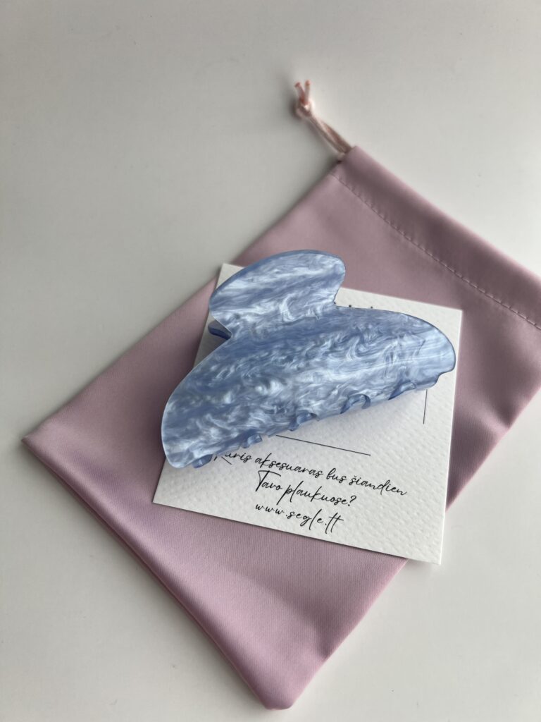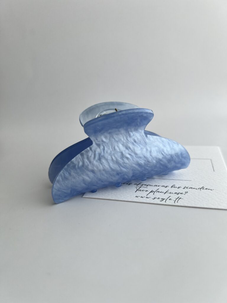 Šviesiai melsvos spalvos plaukų segtukas žnyplės.
