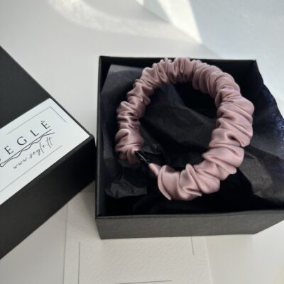 Siaura natūralaus šilko plaukų gumytė, kuri tiks įvairaus storio plaukams. Gumytė šaltos rausvos spalvos.