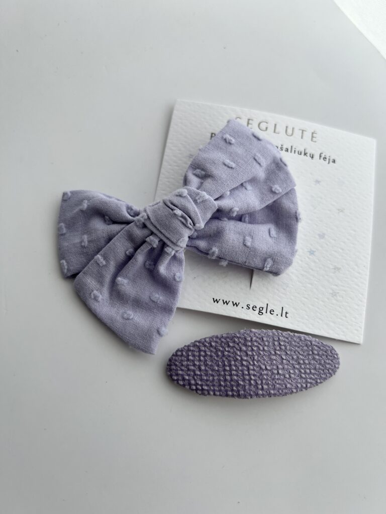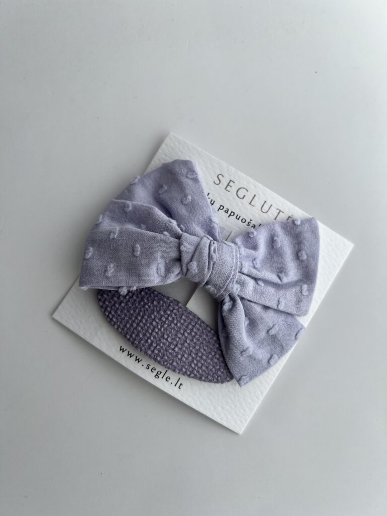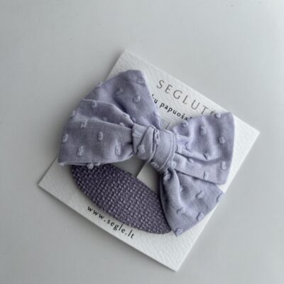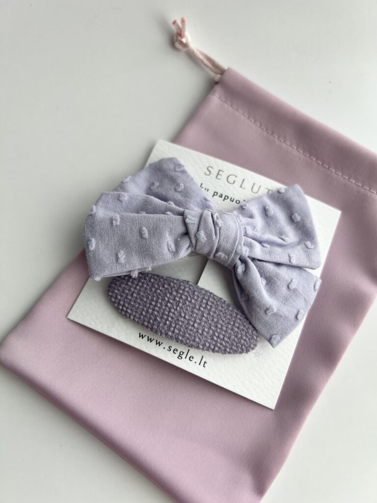 Plaukų segtukas ir kaspinėlis mergaitėms. Aksesuarai šviesios levandų spalvos.