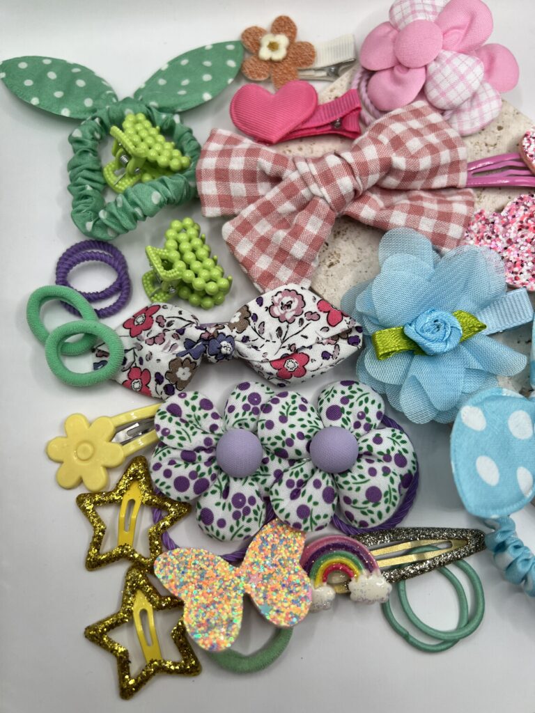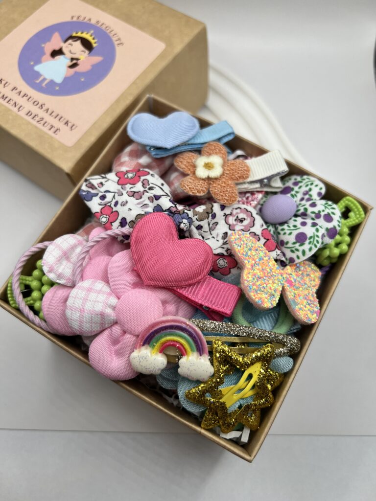 Plaukų aksesuarų dovanų rinkinys mergaitėms „Plaukų papuošaliukų staigmenų dėžutė”.