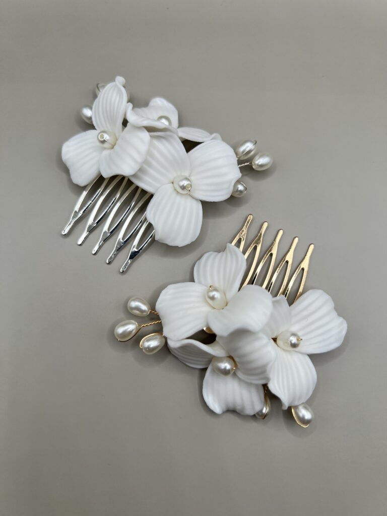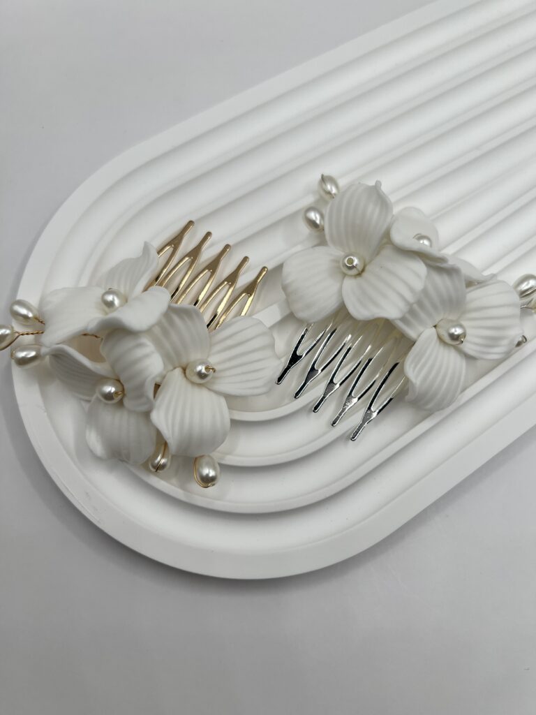 Nedidelės vestuvinės plaukų sagės – šukutės nuotakoms.