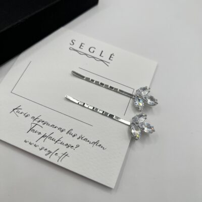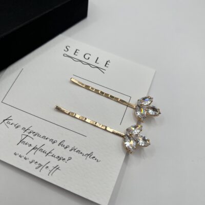 Metaliniai plaukų segtukai dekoruoti blizgančiais cirkoniais.