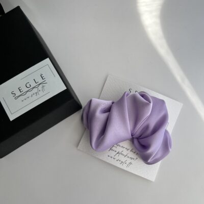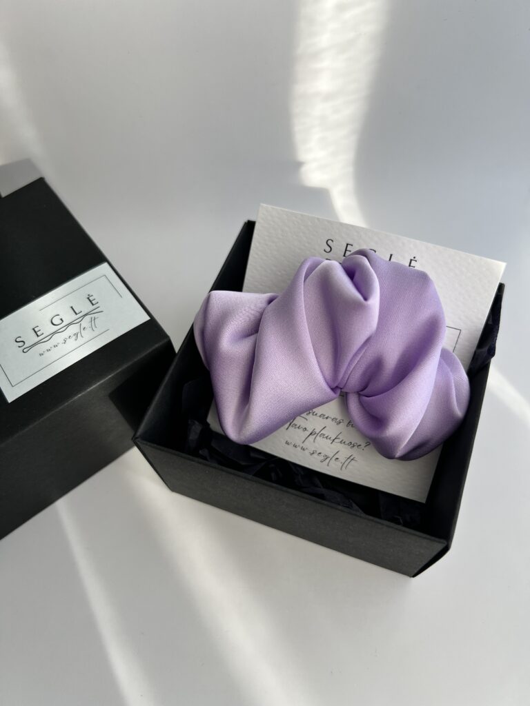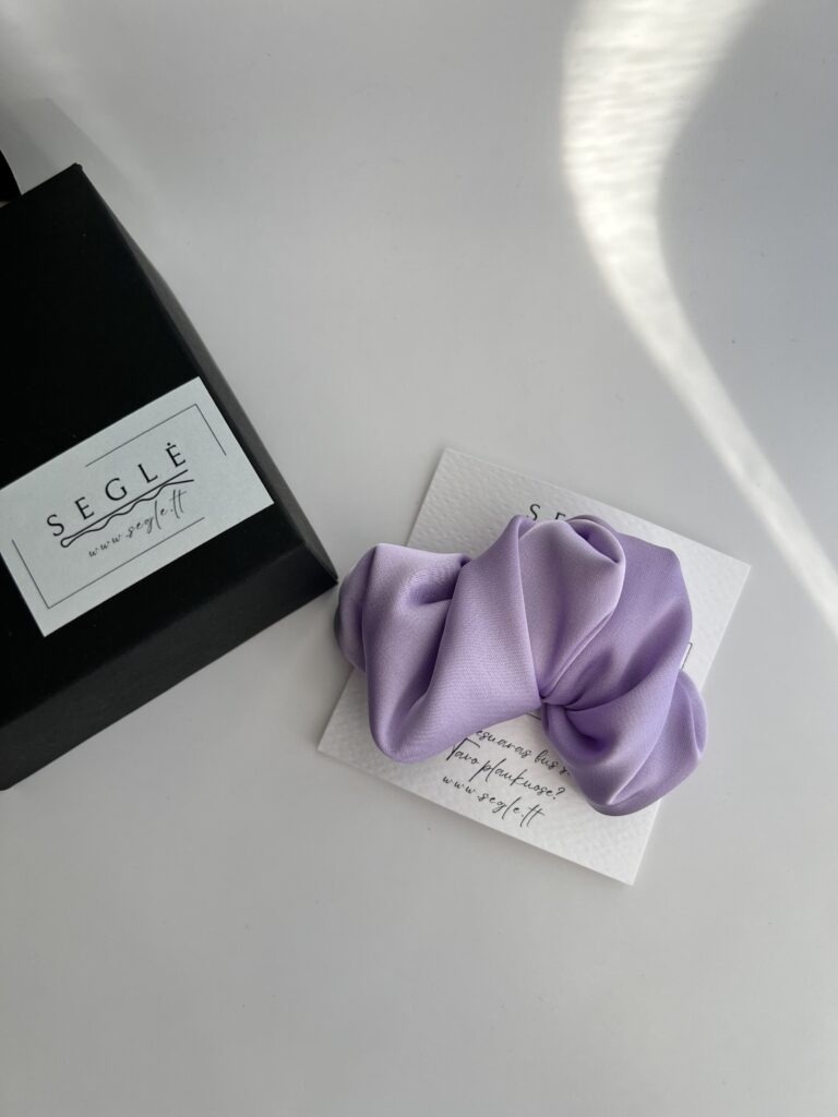 Šviesios alyvinės spalvos rankų darbo plaukų segtukai.