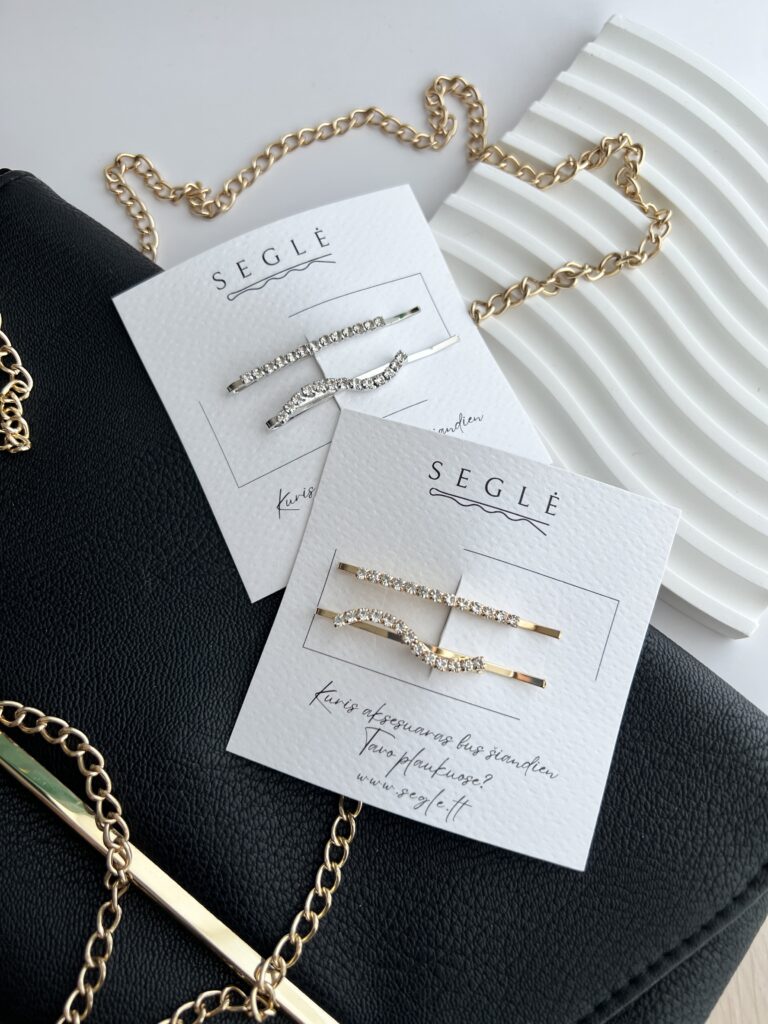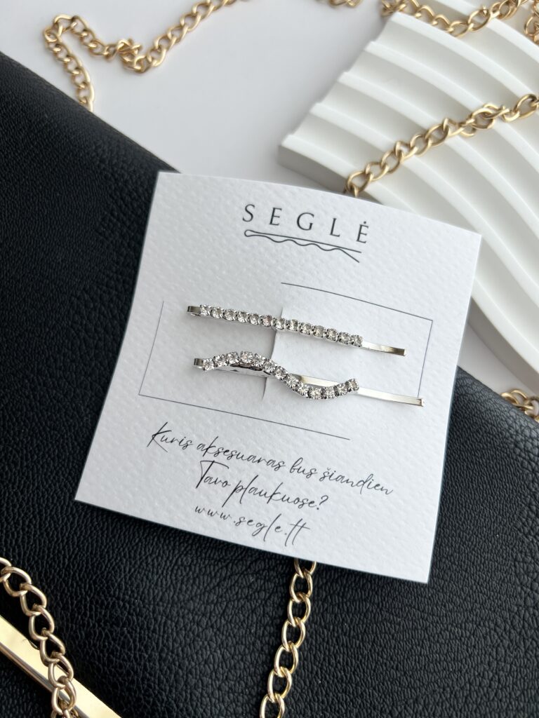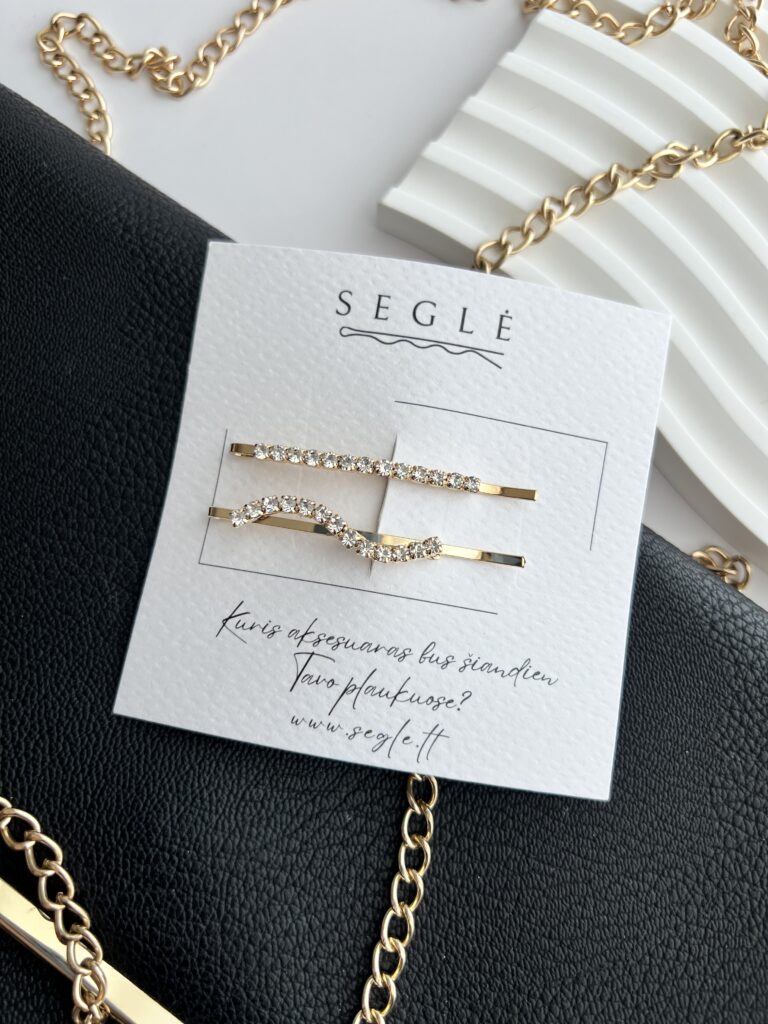 Stilingi, puošnūs, minimalistiniai plaukų segtukai šoninėms plaukų sruogoms susegti.