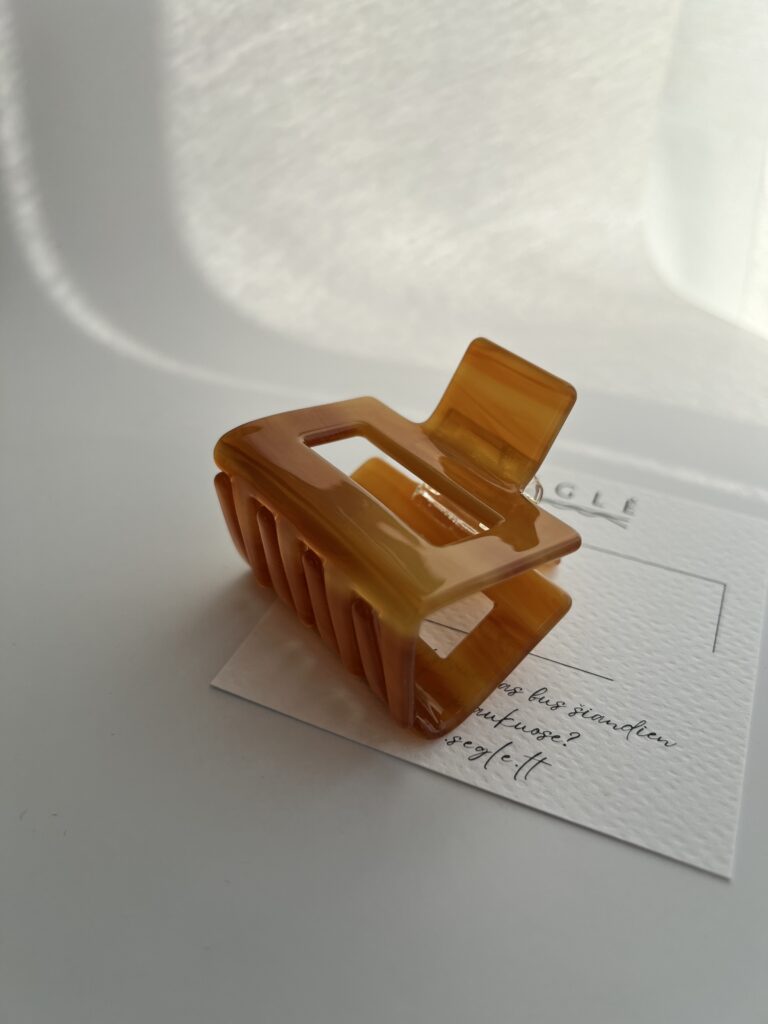 Šviesios rudos spalvos plaukų segtukas – žnyplės.