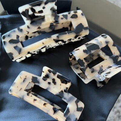 Plaukų segtukai – žnyplės „Migdolinė kava”. Madingas plaukų aksesuaras, kuris tvirtai susega plaukus ir jų nelaužo.