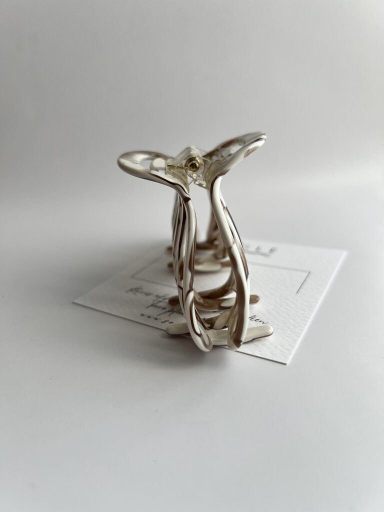 Subtilus plaukų segtukas – žnyplės. Segtukas baltos ir švelnios rudos spalvos.