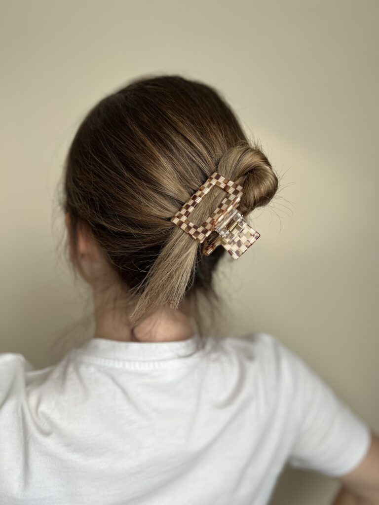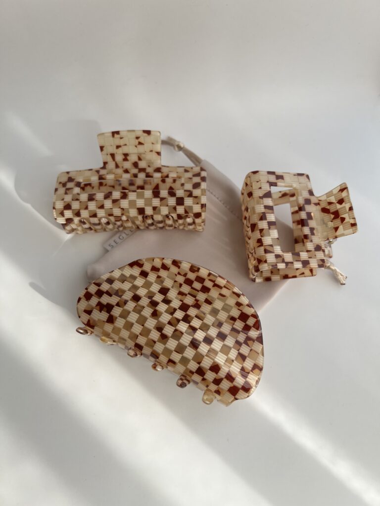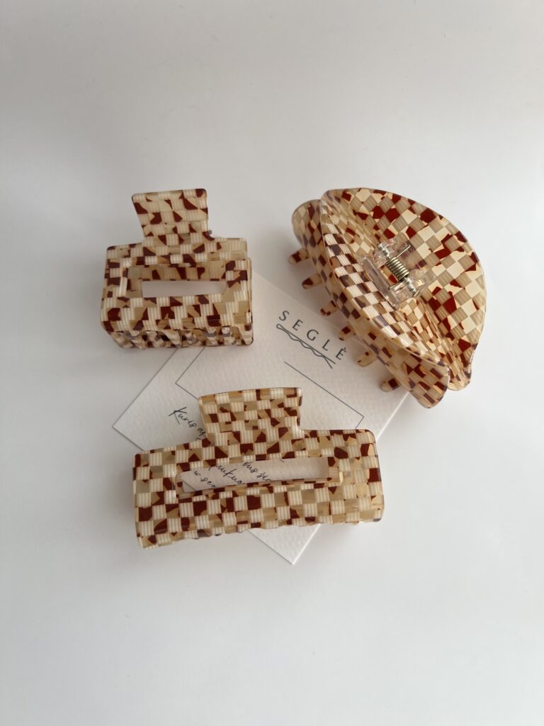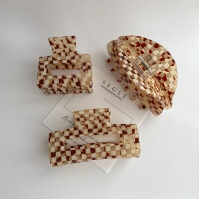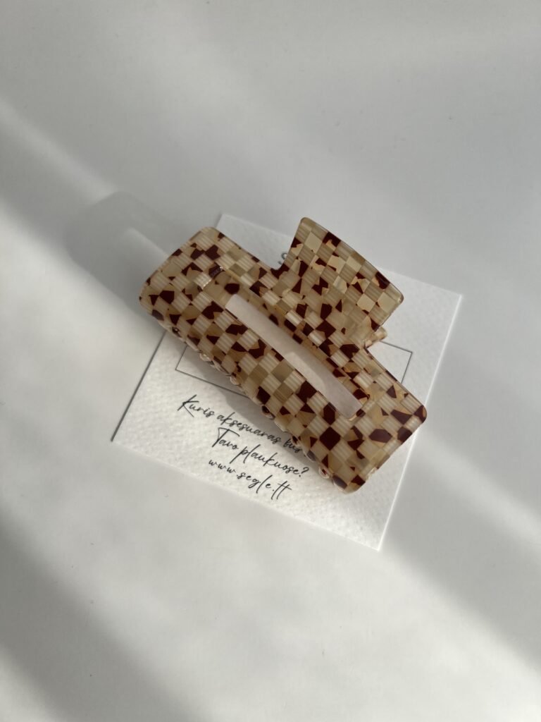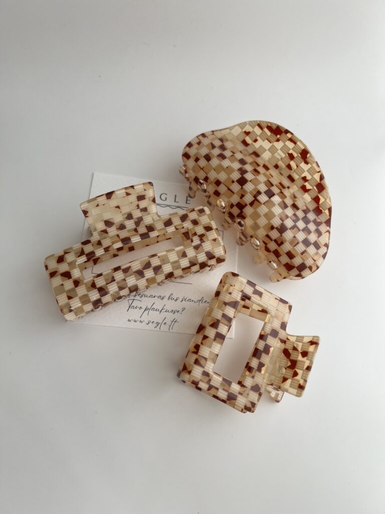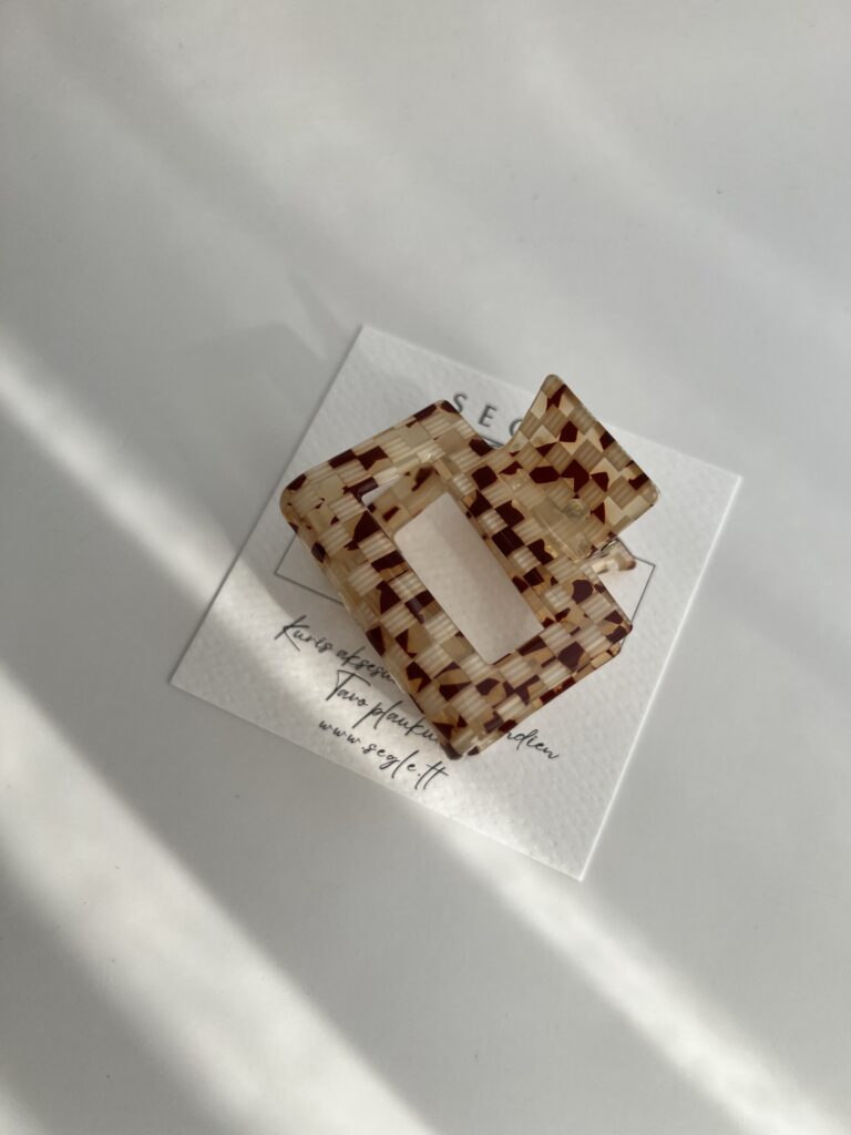 - Kvadratinis – 4,8cm. ilgio ir 4,5cm. aukščio. Su tokiu plaukų segtuku storų plaukų savininkės susegs dalį plaukų, o plonų – visus.