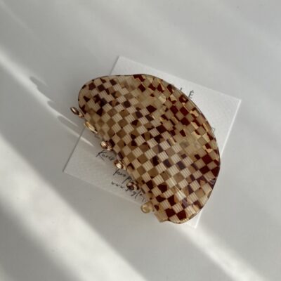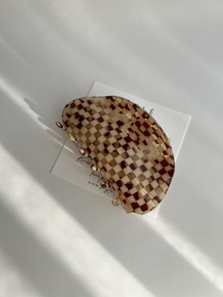 - Kriauklės formos segtukas – 8,7cm. ilgio ir 4,5cm. aukščio. Segtukas tiks vidutinio storio ir storiems plaukams. Galima susegti dalį plaukų arba visus.