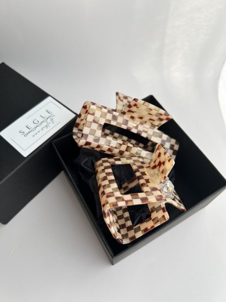 - Kvadratinis – 4,8cm. ilgio ir 4,5cm. aukščio. Su tokiu plaukų segtuku storesnių plaukų savininkės susegs dalį plaukų arba visus, o plonų – visus.