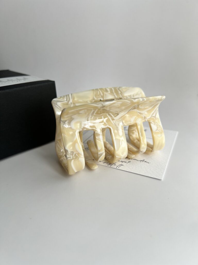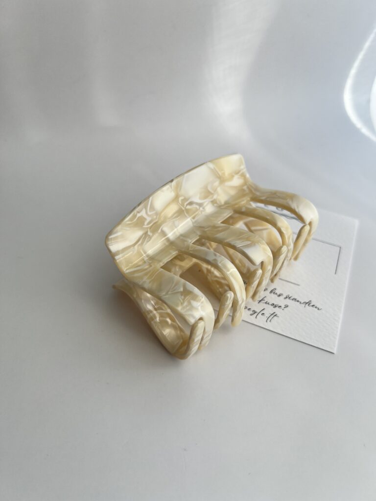 Plaukų segtukas – žnyplės, kurio paviršius atrodo lyg išlietas baltas šokoladas.