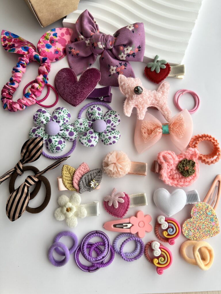 Plaukų segtukų ir gumyčių rinkinys mergaitėms
