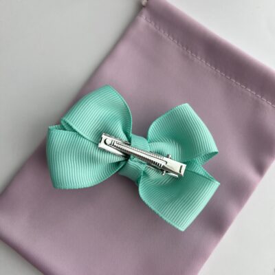 Mėtinės spalvos plaukų segtukas mergaitėms su kaspinėliu.