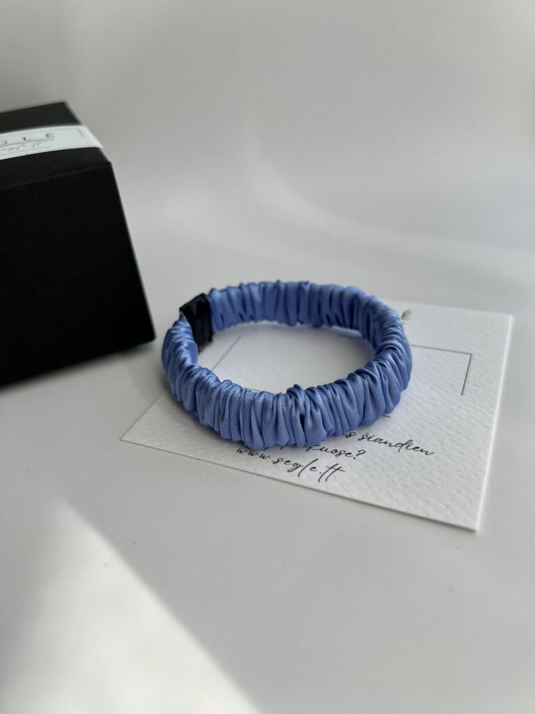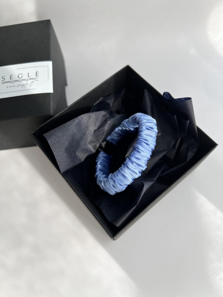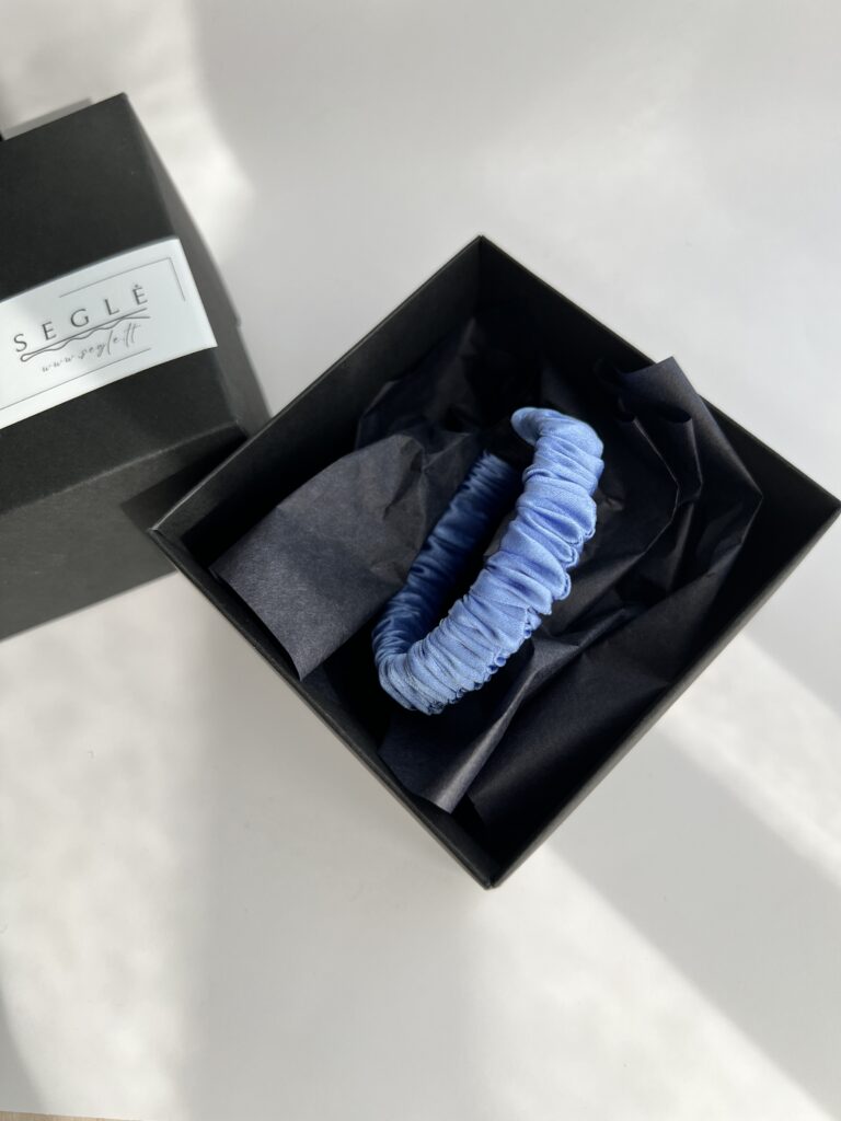 Šviesiai mėlynos spalvos siaura šilkinė plaukų gumytė