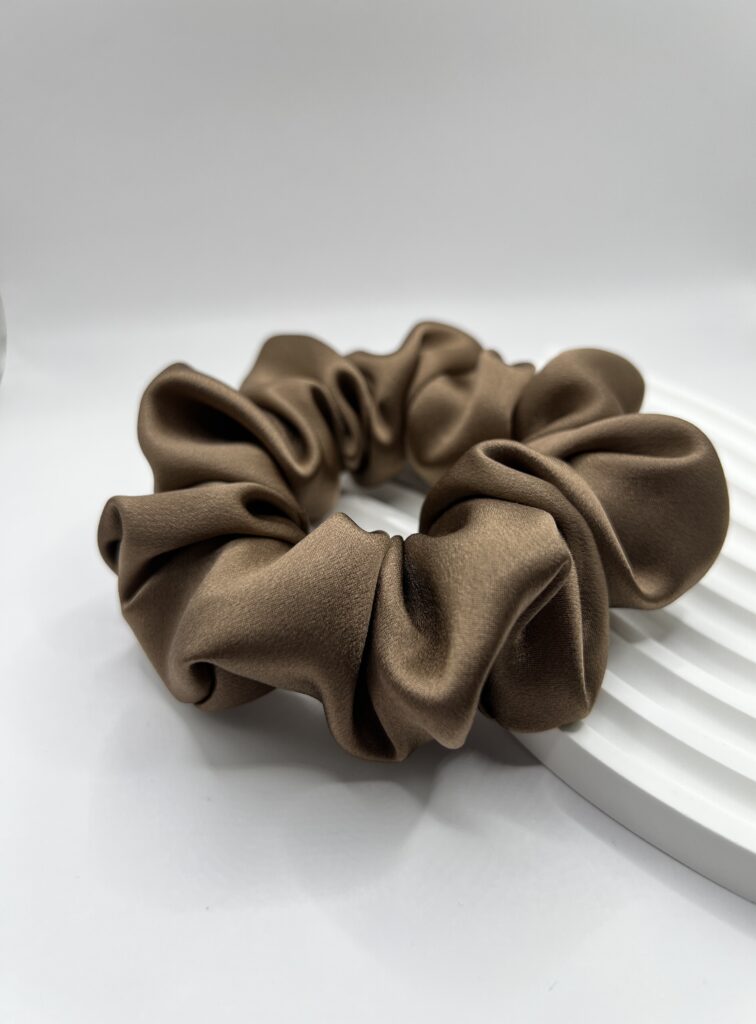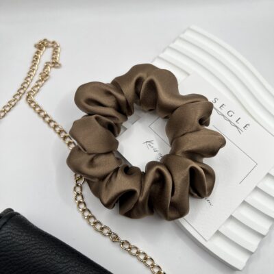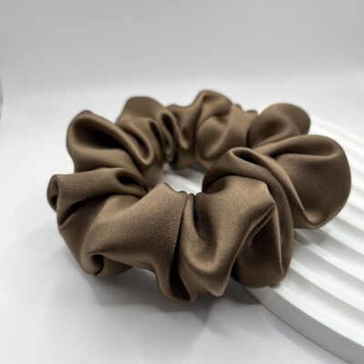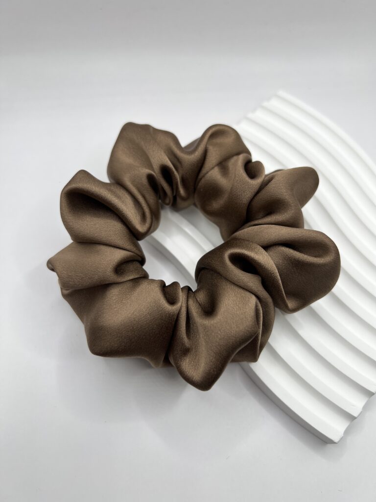 Pieniško šokolado spalvos natūralaus šilko plaukų gumytės.