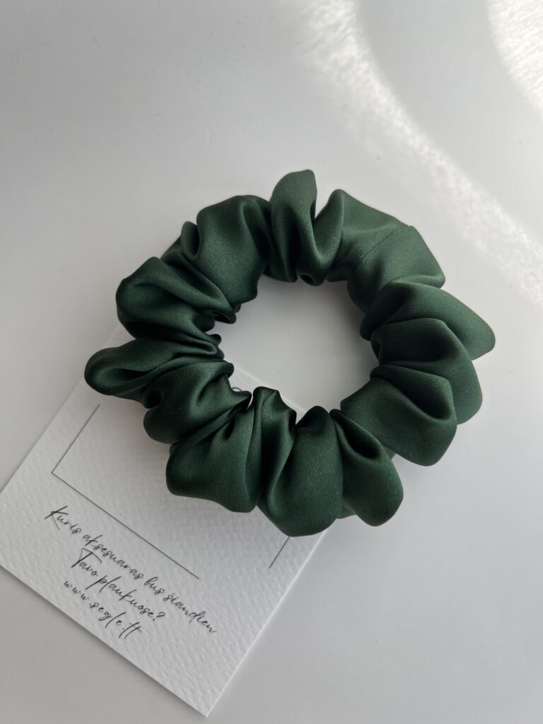 Sodrios žalios spalvos plaukų gumytės pagaminto iš natūralaus šilko. Sodri žalia – prabangi ir labai populiari spalva.